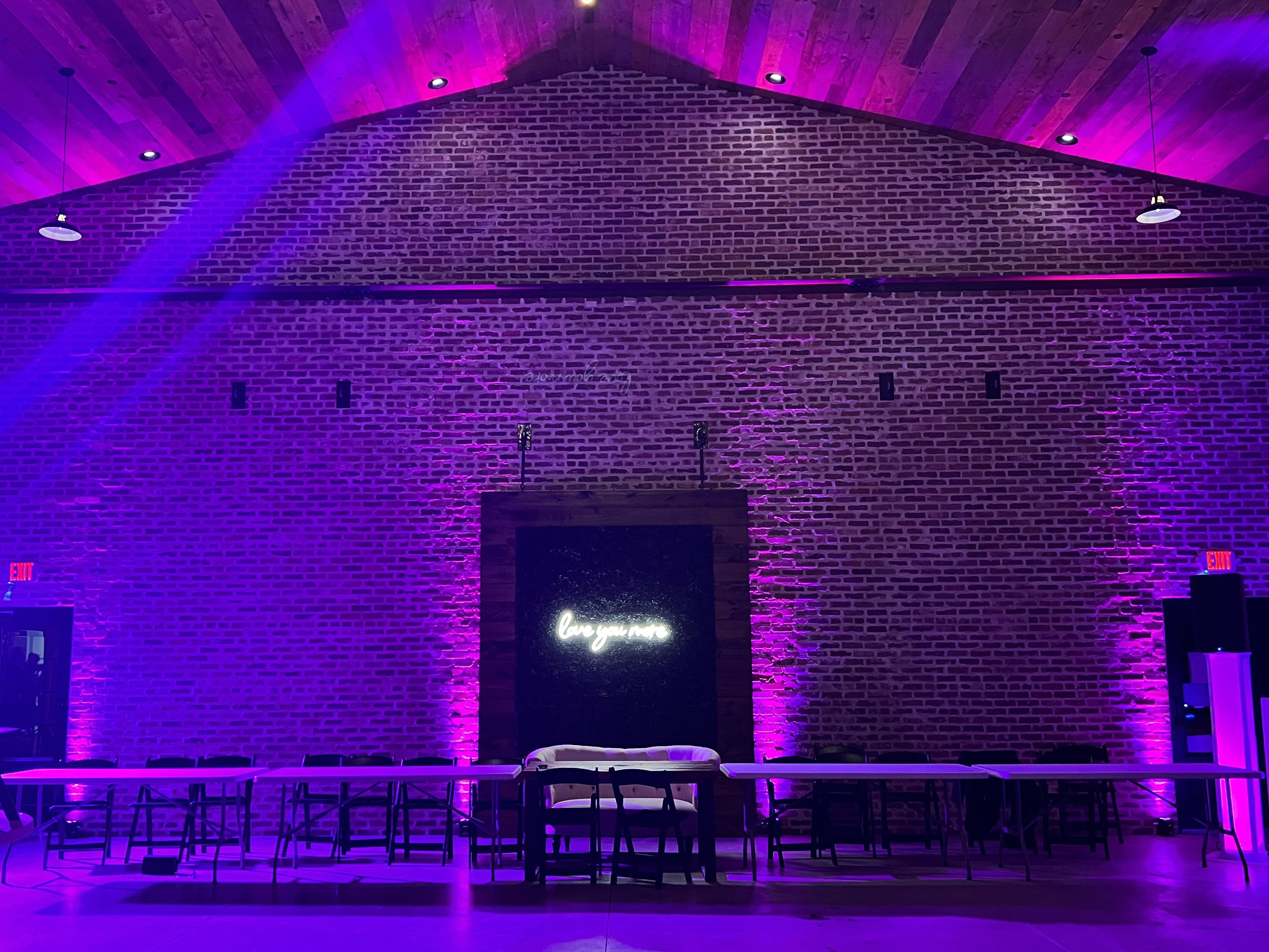 We offer all wireless full-room or one wall uplighting packages.